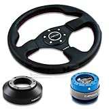 | ✚✚✚ NRG-SRK-141H+012R+200NB, NRG Innovations 12.5" 320mm Black Leather Red Stitch Button Racing Steering Wheel Combo with 6 Hole Short Hub Adapter with Gen 2.0 New Blue Quick Release Kit SRK-141H NRG Quick Release features many options that conventional ball-locking quick release system do not. It is specially engineered with raised sections to prevent the scratching and stretching of the hub while a self locking feature adds increased safety and functionality. Features racing styled for added style and look. Each unit is made from the highest quality aircraft grade aluminum and is anodized for maximum durability and finish.